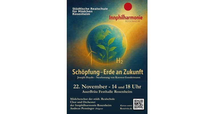 In Zusammenarbeit mit der Mädchenrealschule Rosenheim erklingt Haydns Meisterwerk, neu erzählt und arrangiert durch den Komponisten Karsten Gundermann. Das Werk wurde gekürzt, die Texte sind dem Zeitgeist angepasst und thematisieren unsere Verantwortung für unsere natürliche Umwelt. Manche Melodien werden vom großen Kinderchor der Mädchenrealschule ein- und zweistimmig mitgesungen. "Ich möchte Jugendlichen die Möglichkeit bieten, mit dieser Art Musik in Verbindung zu kommen, auf einer Bühne zu stehen und gemeinsam mit Solisten, großem Chor und Orchester vor Publikum zu musizieren. Das wird sicher für alle Beteiligten ein großes Erlebnis", erklärt Andreas Penninger, künstlerischer Leiter der Innphilharmonie.