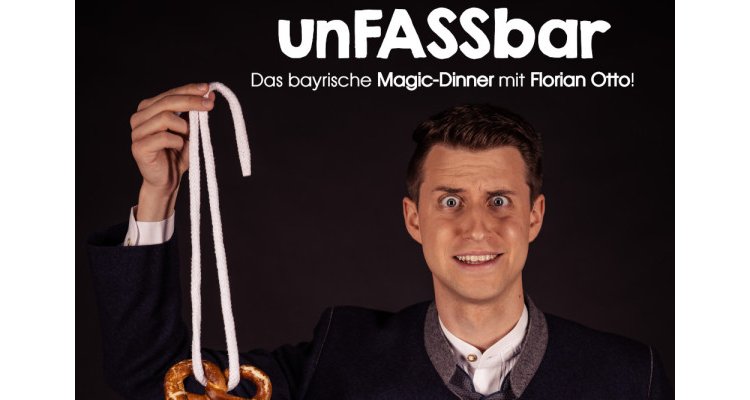 "unFASSbar" – Das bayerische Magic-Dinner mit Florian Otto!Die neue Dinner-Version der erfolgreichen Kabarett-Zaubershow präsentiert vom preisgekrönten Zauberkünstler Florian Otto. Ein großes Fass, randgefüllt mit bairischem Entertainment!