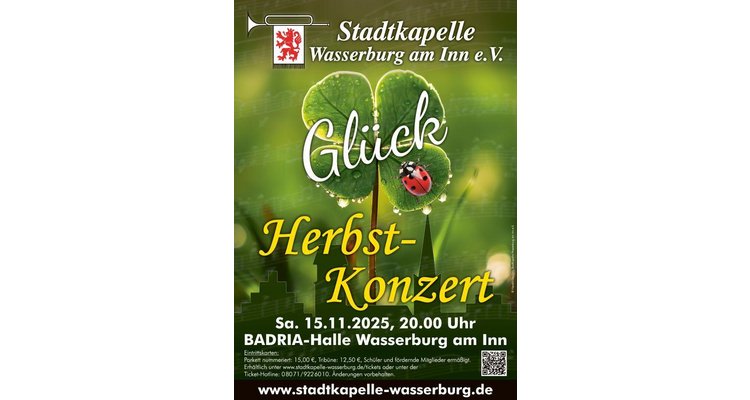 Einfach „das Glück“ ist das diesjährige Motto der Wasserburger Stadtkapelle beim Herbst-Konzert am Samstag, den 15. November, um 20 Uhr in der Badria-Halle. Die musikalische Gesamtleiterin der Stadtkapelle, Barbara T. Bschorr, hat für das große Blasorchester ein Programm zusammengestellt, in dem vielschichtige Lebensgefühle wie Mut, Liebe, Demut, Spiritualität und Zuversicht musikalisch betrachtet werden, eingepackt als Augenblicke des Glücks in eindrucksvoller Blasorchestermusik.