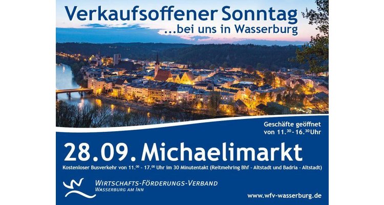 Mit Ausnahme des Bennomarktes sind die Märkte verkaufsoffen, es kann also auch ausgiebig in den Wasserburger Läden gebummelt werden. Die Geschäfte haben von 11.30 bis 16.30 Uhr offen. Der Stadtbus pendelt in der gleichen Zeit zwischen Badria, Altstadt und Reitmehring im 30-Minuten-Takt und ist gratis nutzbar!