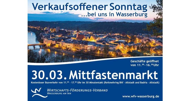 Mit Ausnahme des Bennomarktes sind die Märkte verkaufsoffen, es kann also auch ausgiebig in den Wasserburger Läden gebummelt werden. Die Geschäfte haben von 11.30 bis 16.30 Uhr offen. Der Stadtbus pendelt in der gleichen Zeit zwischen Badria, Altstadt und Reitmehring circa im 30-Minuten-Takt und ist gratis nutzbar!