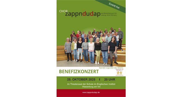 Das Konzert findet am Samstag, den 25.10.2025 um 20 Uhr im Theatersaal der Schule im Englischen Institut in Wasserburg statt. Der Eintritt ist frei, die Spenden gehen an den Verein „Begegnungen mit Menschen e.V.“ .